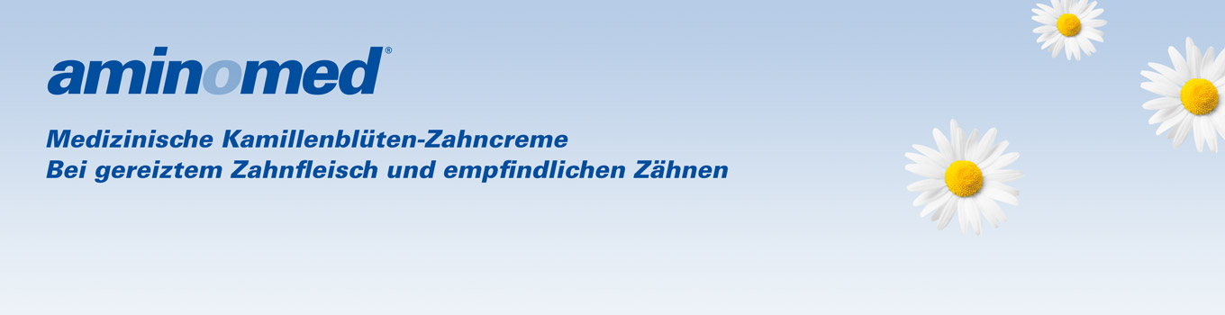 Die optimierte Formulierung der Aminomed kommt ohne den weißenden Inhaltsstoff Titandioxid aus. Dadurch werden die vielen natürlichen Inhaltsstoffe wie die Extrakte der Echten Kamille und die ätherischen Öle in einer natürlichen Zahncreme-Färbung sichtbar. In einer Anwendungsstudie erhielt Aminomed klinisch-dermatologisch und zahnmedizinisch das Testergebnis „sehr gut“. Mit ihrem erhöhten Fluoridanteil schützt sie die Zähne noch wirksamer vor Karies. Durch die Anwendung reduziert sich auch das Schmerzempfinden an den Zähnen beim Genuss von Heißem oder Kaltem, Süßem oder Saurem deutlich: Schon nach sieben Tagen ist es um 54,1 Prozent gesunken [1].